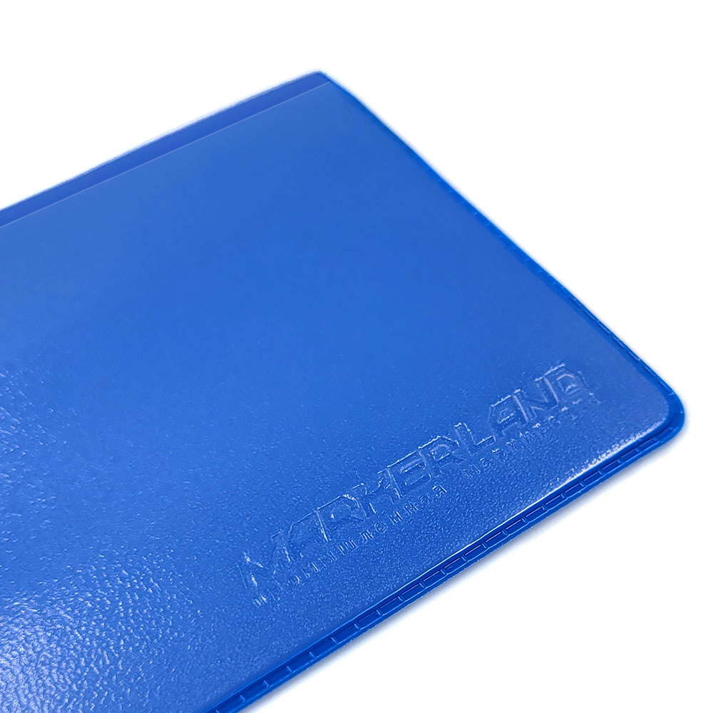 Синяя подложка-основа и прозрачное окошко выполнены из износостойкого полипропилена. Не бликует, что удобно для сканирования, нет необходимости вынимать маркировочный вкладыш. Вкладыш с информацией легко и удобно заменять.