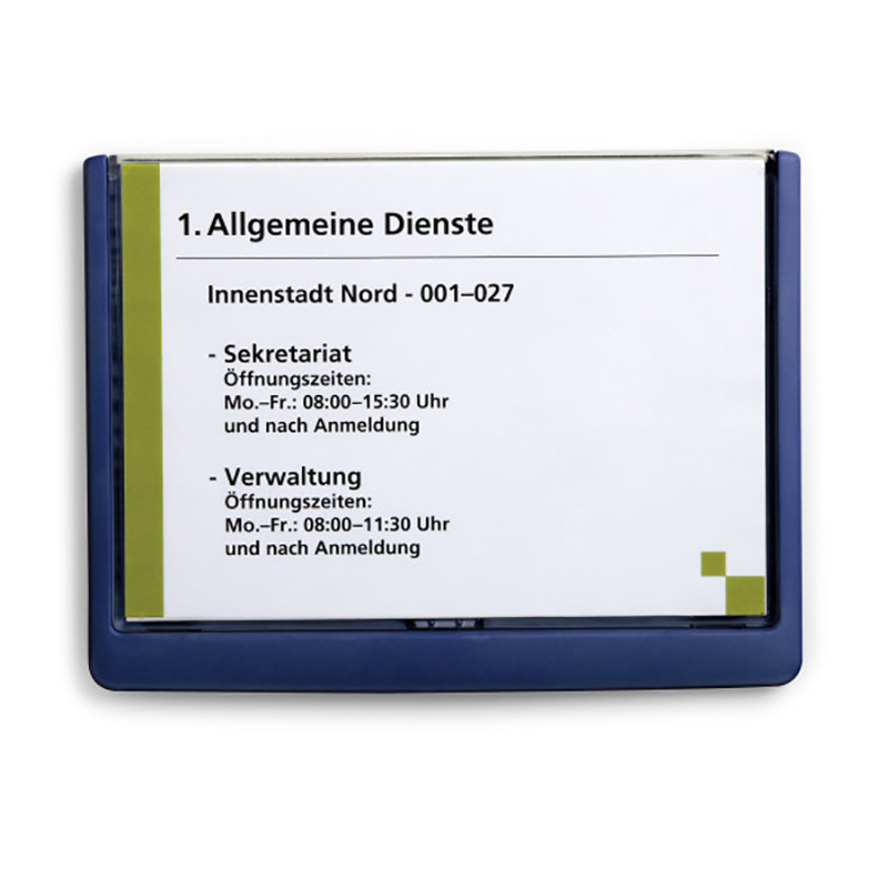 Настенная пластиковая табличка CLICK SIGN с акриловой панелью формата А5 для маркировки кабинетов. Крепится на двустороннюю клейкую подушку или прикручивается саморезами.