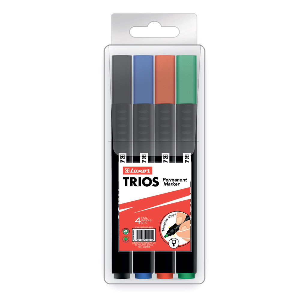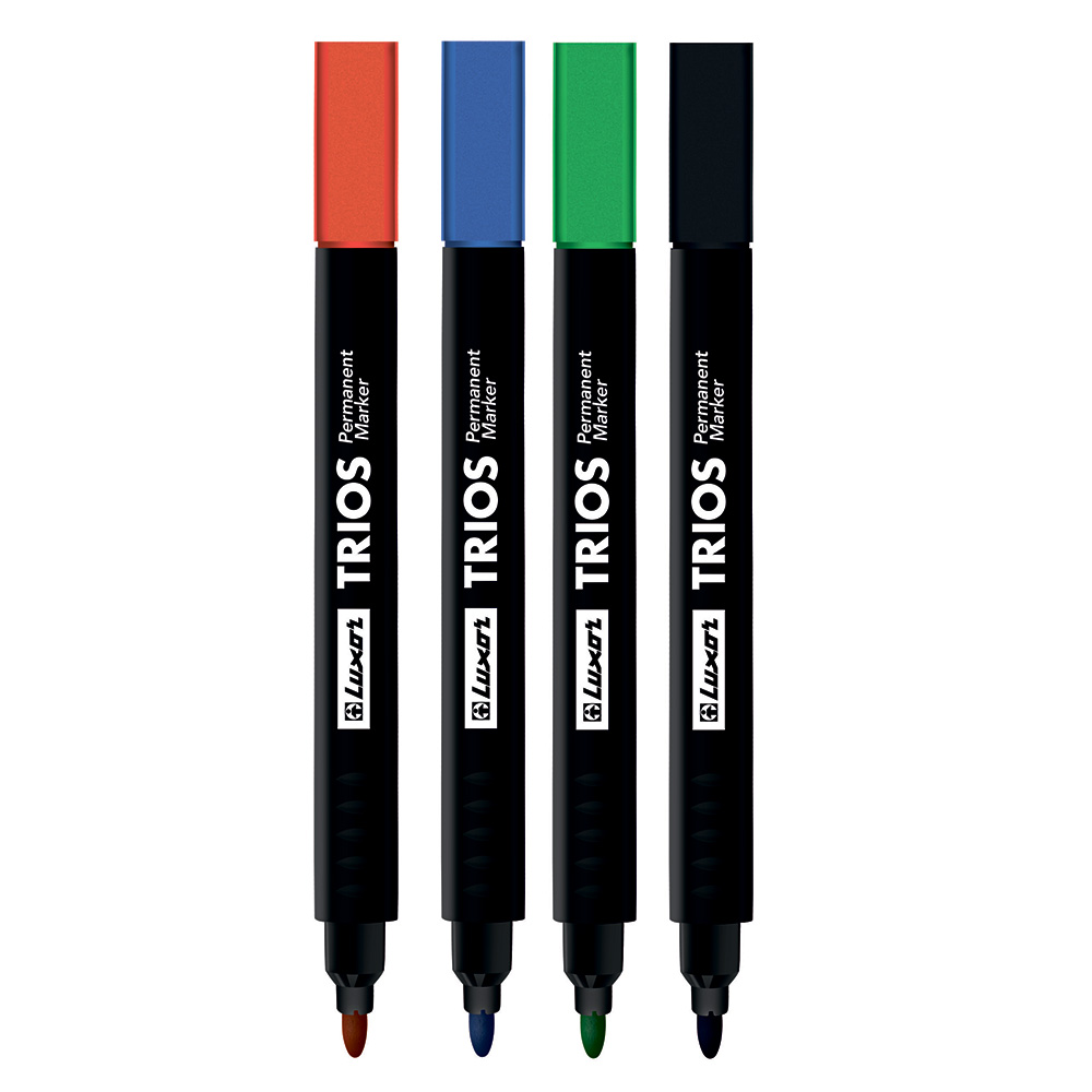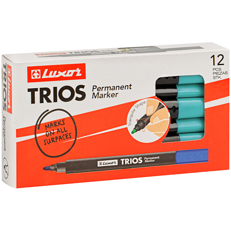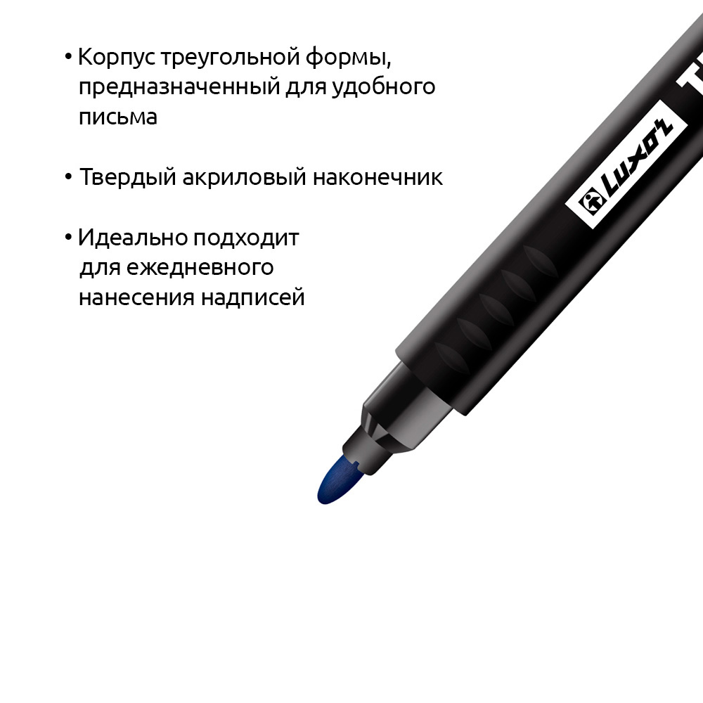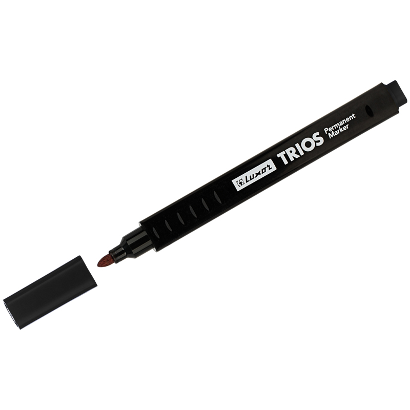 Эргономичный трехгранный перманентный маркер Luxor "Trios" – удобный в работе для надёжной маркировки. Изготовлен из прочного пластика с наконечником из прочного акрила, который прослужит долго, не деформируясь.