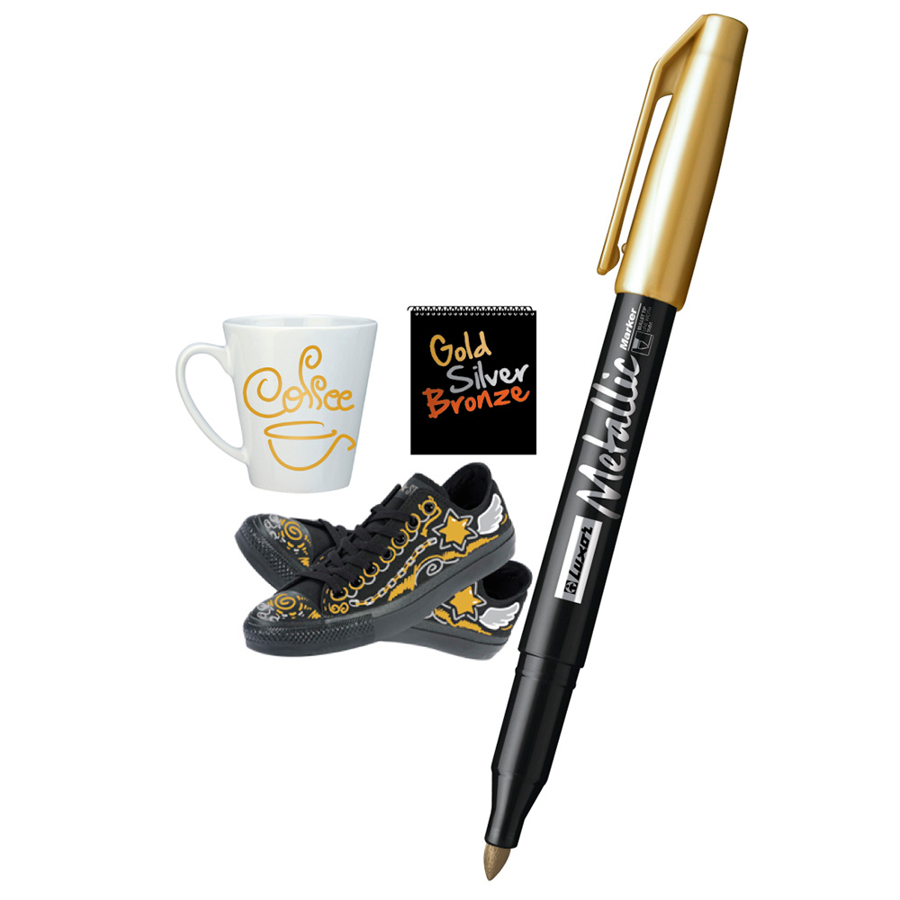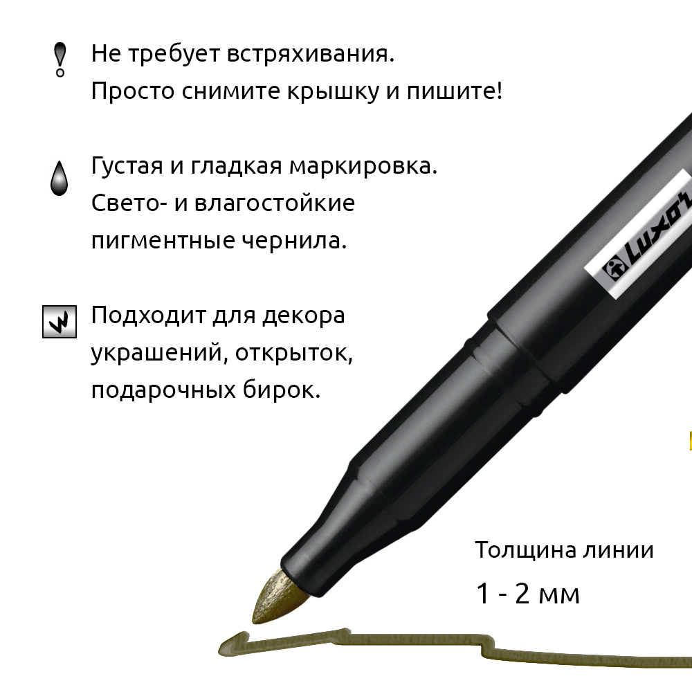Металлические маркеры Luxor Metallic идеально подходят для легкого и смелого декорирования украшений, оформления поздравительных открыток, подарочных бирок и многого другого. Блестящий след маркеров виден как на светлых, так и на темных поверхностях.