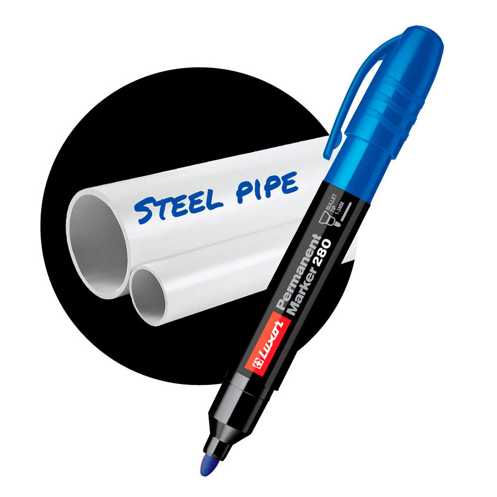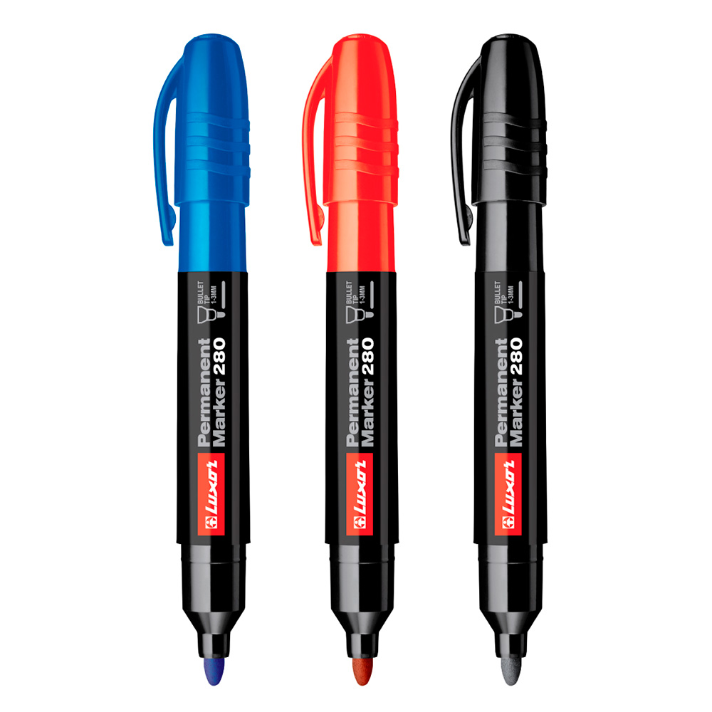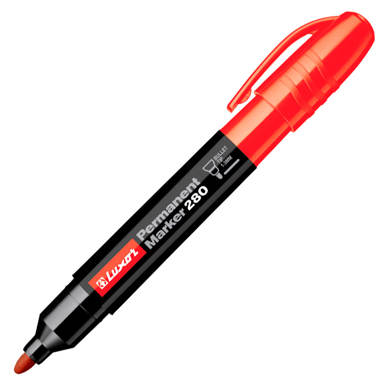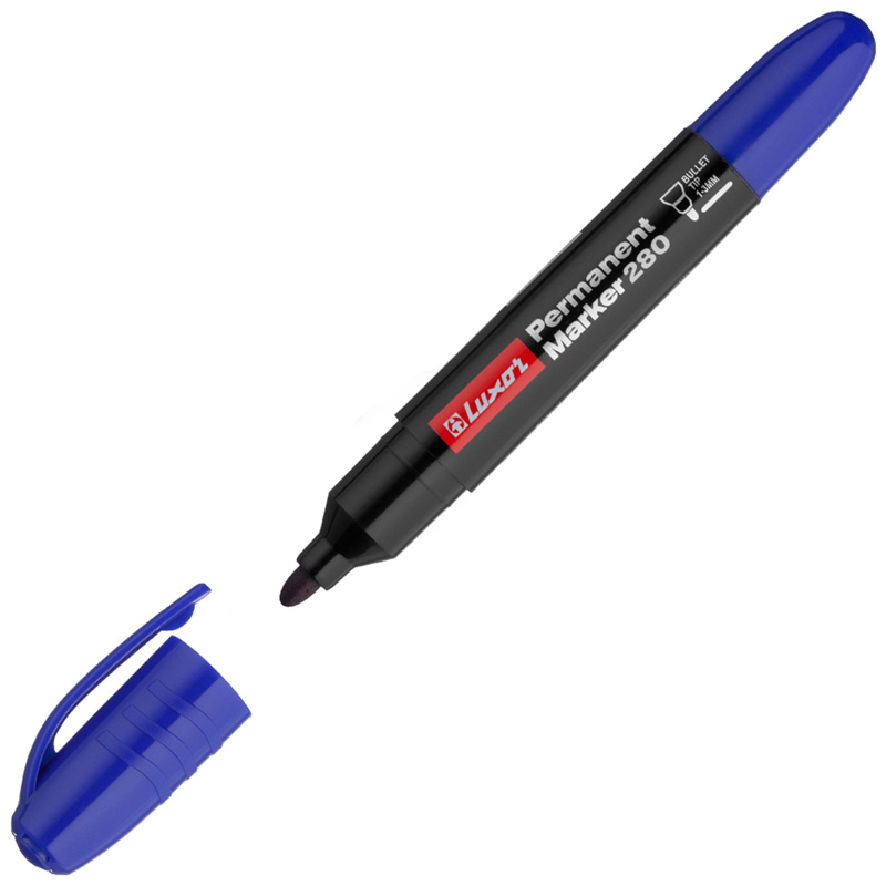 Универсальный перманентный маркер Luxor 280 выпущен в большом корпусе для удобства захвата. Им можно делать надписи на большинстве поверхностей: доске, пластике, стекле, керамике и металле.