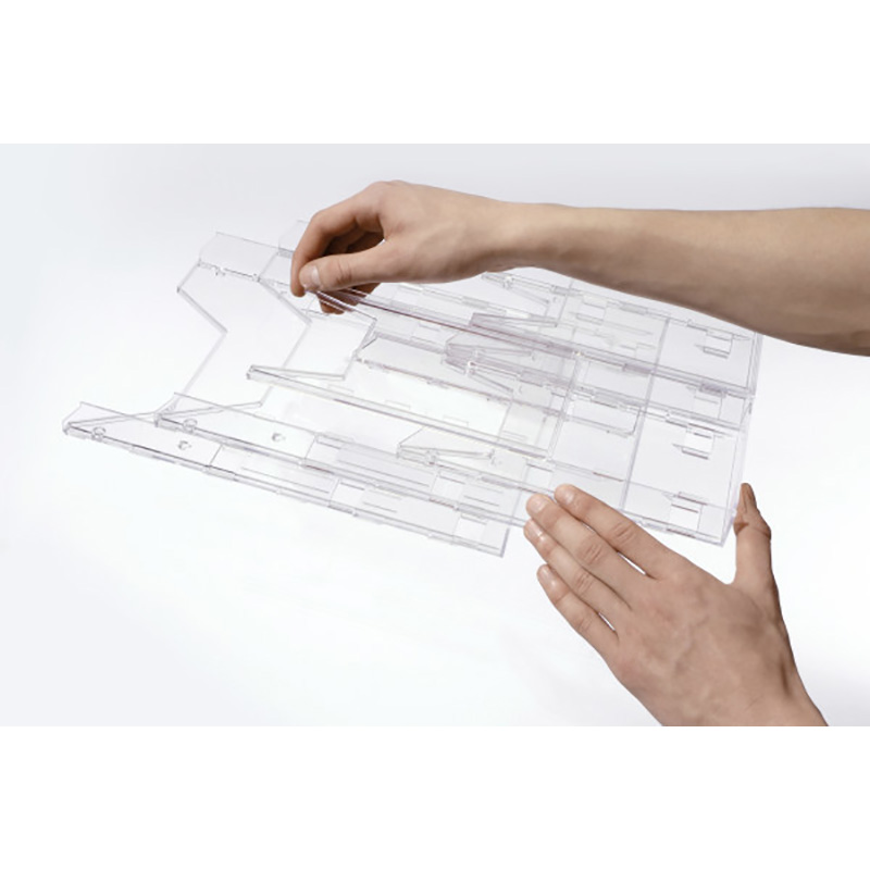 Подставка для выкладки рекламных материалов в комплекте: 1 лоток А4 формата, и 4 лотка формата 1/3 А4. Может наращиваться при помощи комбинирования с COMBIBOXX A4 (арт. 8579) или COMBIBOXX 1/3 A4