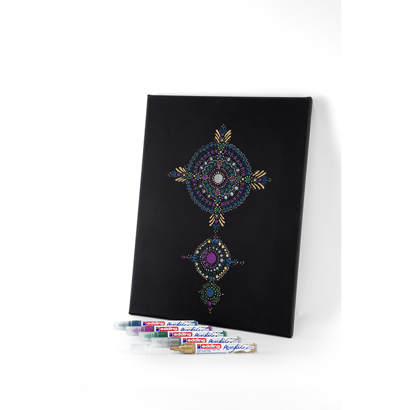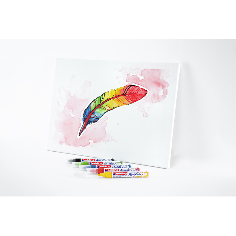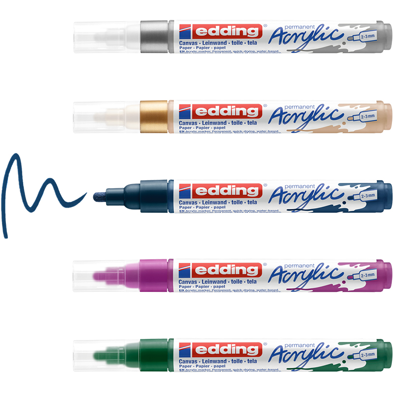 Универсальный инструмент в ассортименте акриловых продуктов! Ищете акриловый маркер, который подойдет для любых задач? Лучше, чем средний акриловый маркер edding, вам не найти! С помощью его пулевидного наконечника с шириной штриха 2-3 мм вы сможете нарисовать точные линии и формы на холсте.